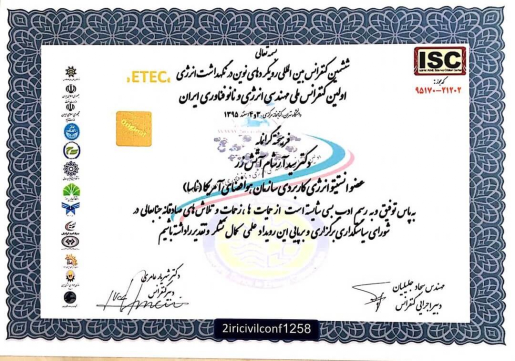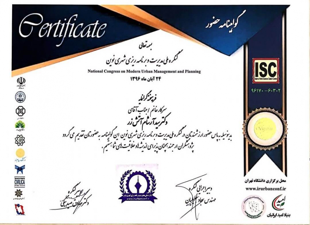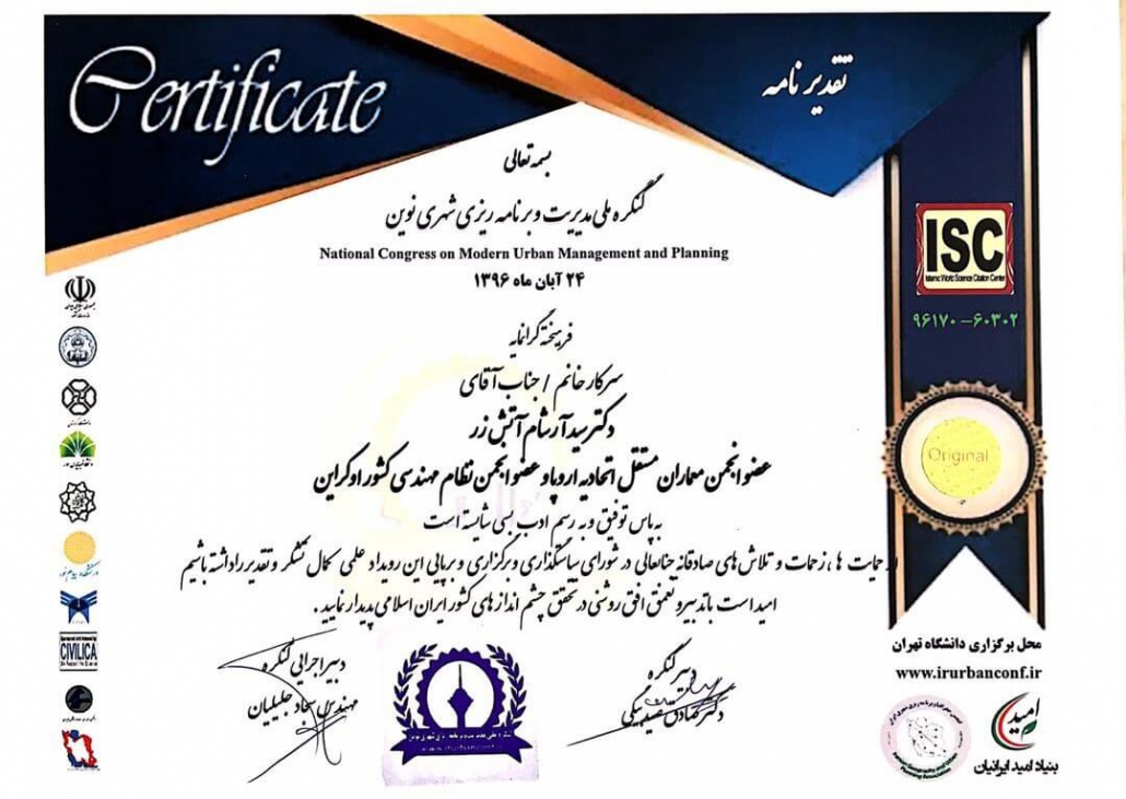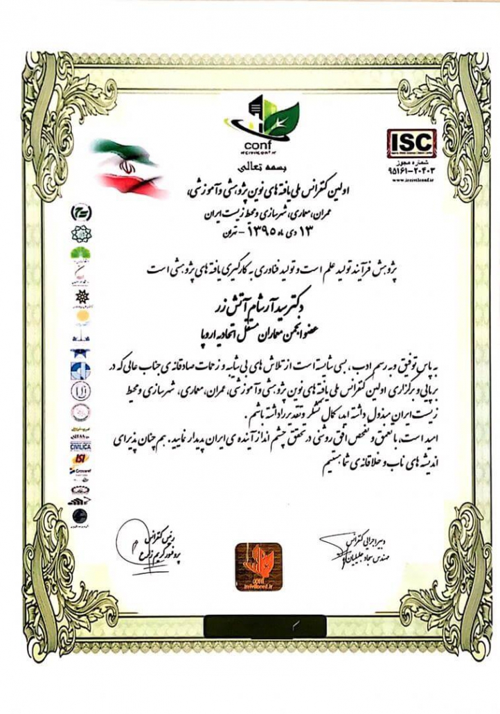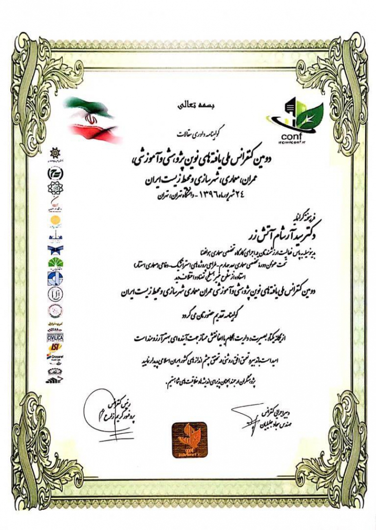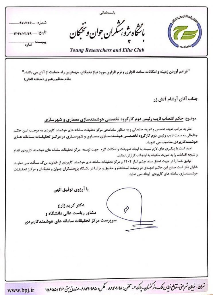 Member of the Young and Elite Researchers Club and Vice President of the Architecture and Urban Planning Intelligence Working Group at the Intelligent Applied Systems Research in Center of the Young and Elite Researchers Club of the Islamic Republic of Iran.